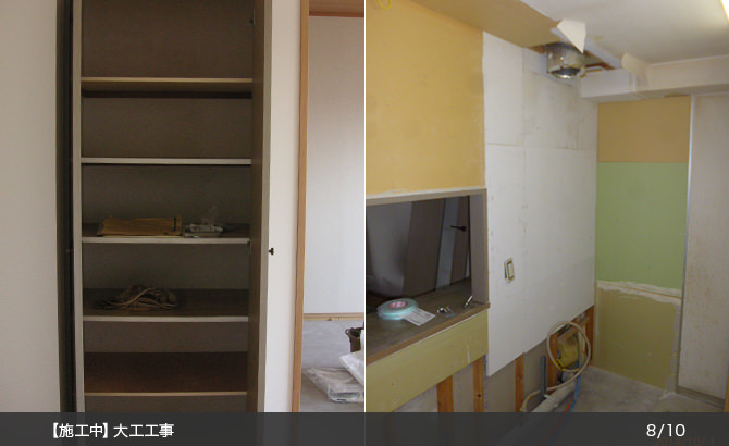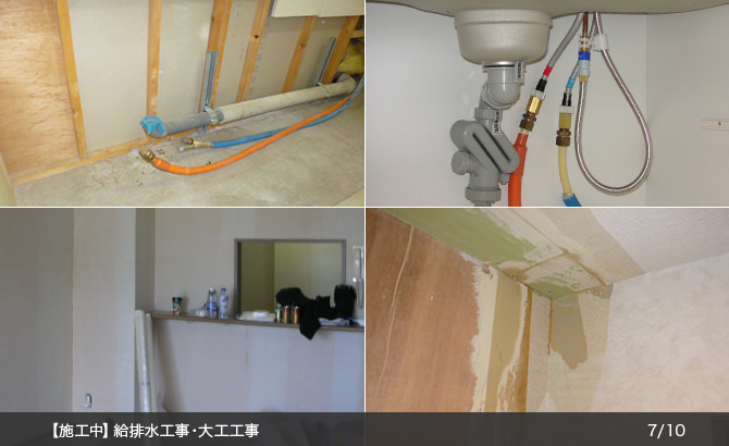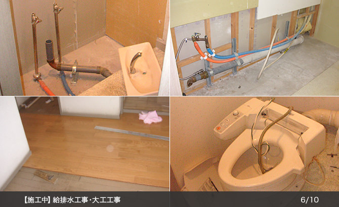 傷んでいたフローリングも大工の手によって次々とはがされ、新しいものが張られました。